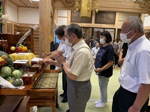 【山内より】 令和7年8月7日 お檀家様先祖供養(施食会・旧オセガキ)総勢7名の僧侶により厳修されました。併せて新盆塔婆供養も厳修されました。(令和7年8月)